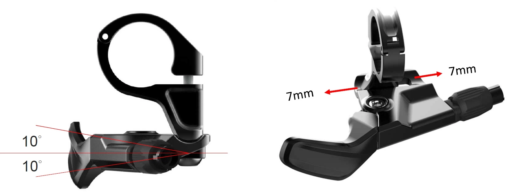 Dank des einstellbaren Winkelbereichs von +10 Grad und einer horizontalen Einstellung von +7 mm können Sie eine individuellere Passform genießen, die Ihrer bevorzugten Handposition entspricht. Um das Ganze abzurunden, können die Kabel an beiden Enden installiert werden, sodass Sie entweder die Kabelhülse in den Hebel einführen können, oder Sie können die Schraube verwenden und das Kabel an der Sattelstütze installieren.