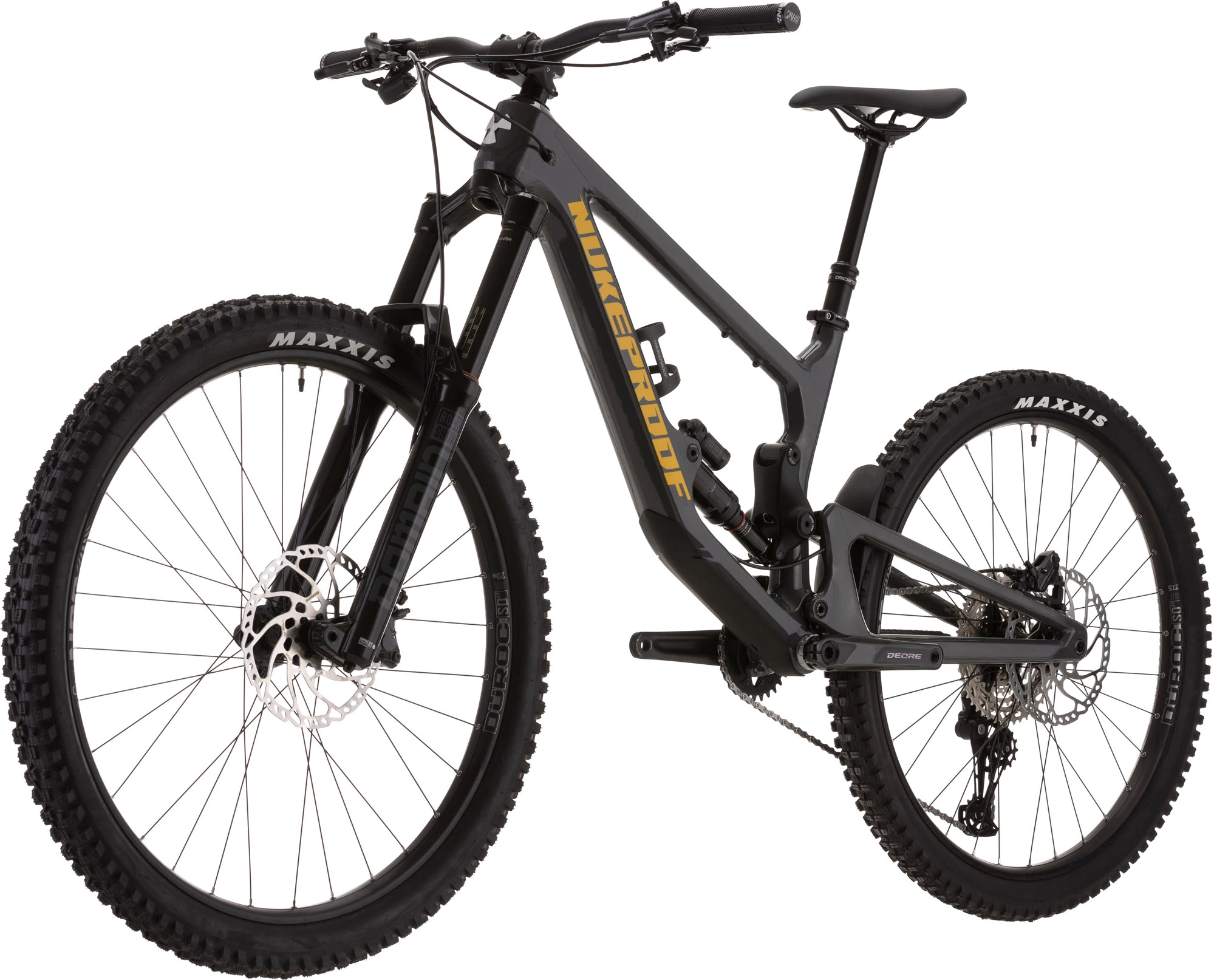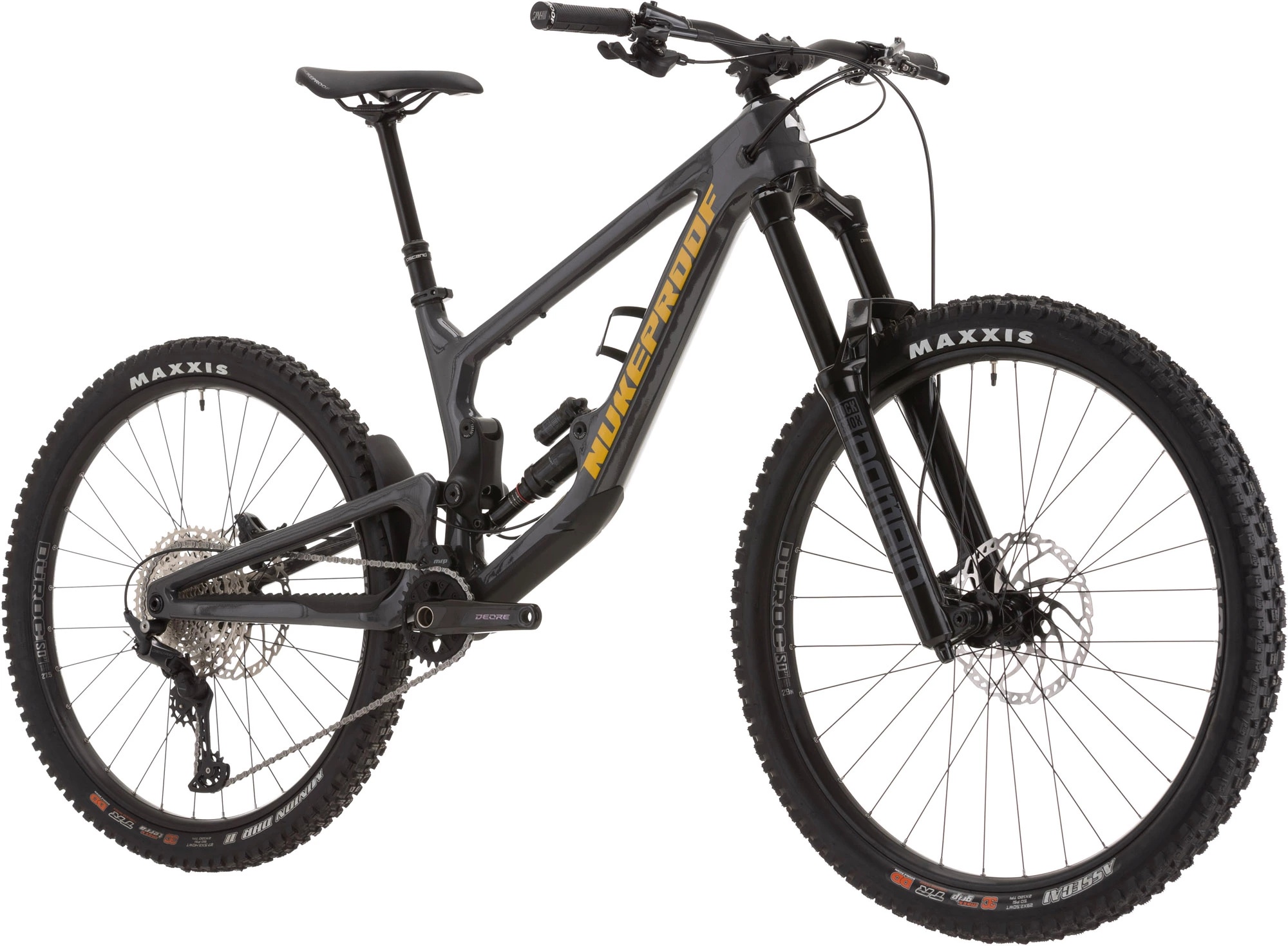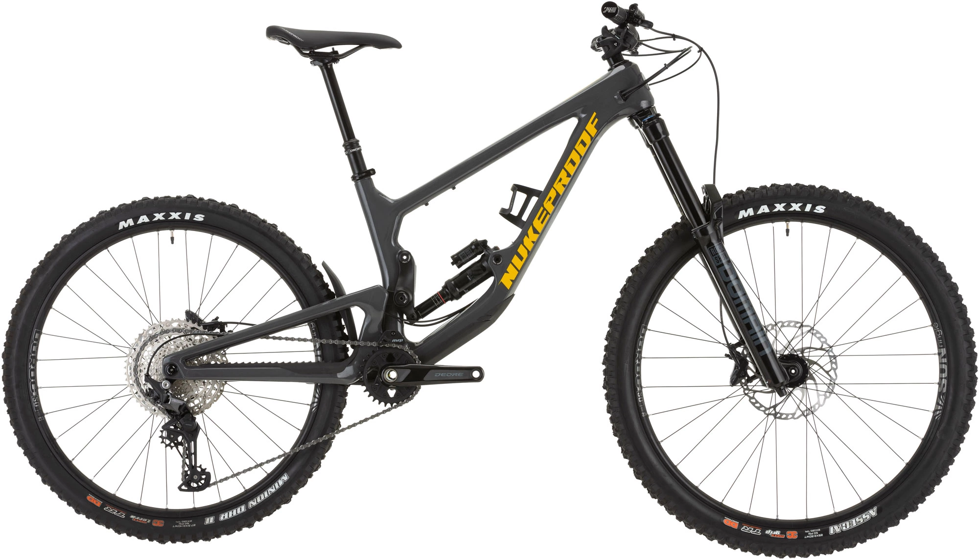 Frame: Nukeproof Giga 297 Carbon, 180mm Travel, ultra-strong monocoque UD Carbon Fibre frame, adjustable main pivot, internally piped cable routing, ISCG 05 mounts, Enduro Bearings, Threaded 73mm BB, Boost 148mm rear axle spacing, 3D contoured Rubber frame protection and Factory fitted clear paint protection kit covering TT/DT/CS/SS