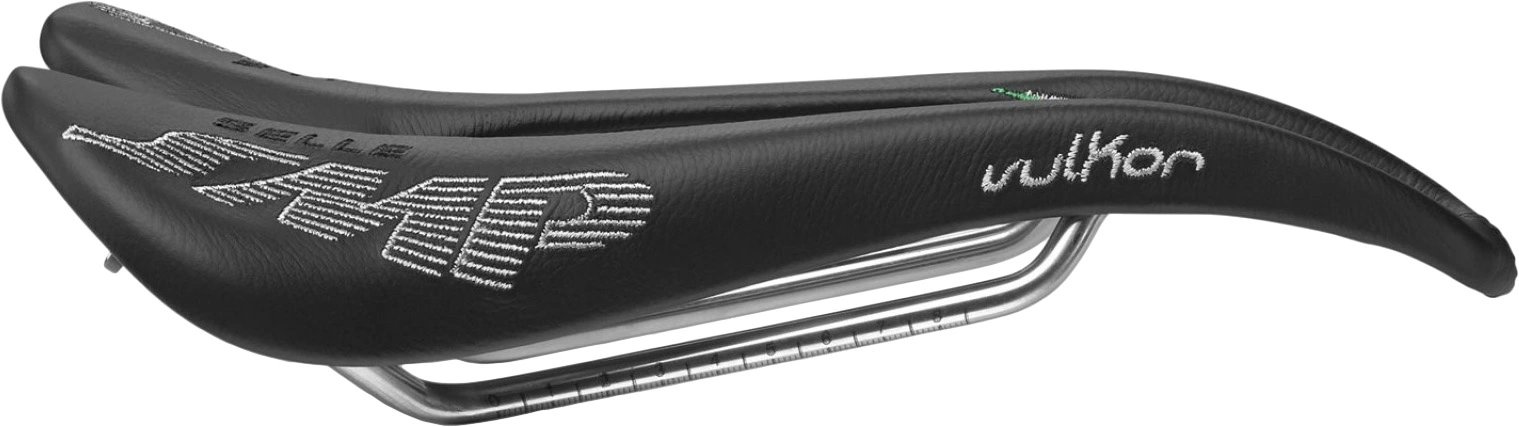 Designed to eliminate pressure from sensitive areas, in addition to its dropped and cut-out central area, it also has a sloping “eagle’s beak” type nose. It’s also at home on the road or off-road and is constructed around a stiff and lightweight nylon/carbon fibre composite shell. This shell has undergone extensive testing to meet the most stringent resistance and stability tests. In addition to this, the Vulkor also boasts durable stainless steel rails.