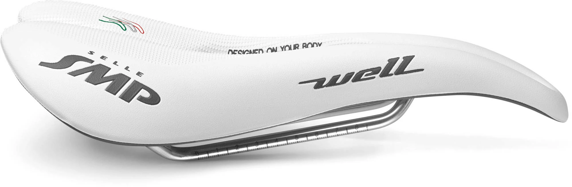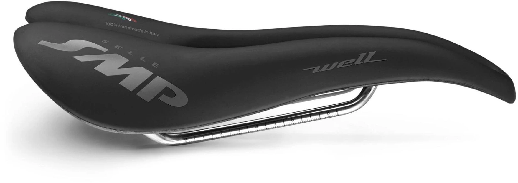 The back of the Selle SMP Well saddle is raised for an enhanced seated pedalling position, where body weight is divided between the rear and lower part of the ischial tuberosity region. This shape also helps reduce overall pressure on the coccyx while riding over rough surfaces.
