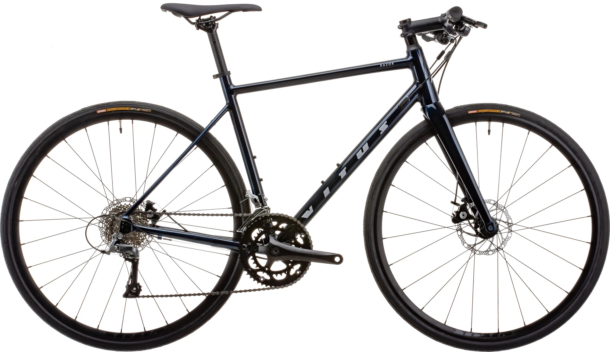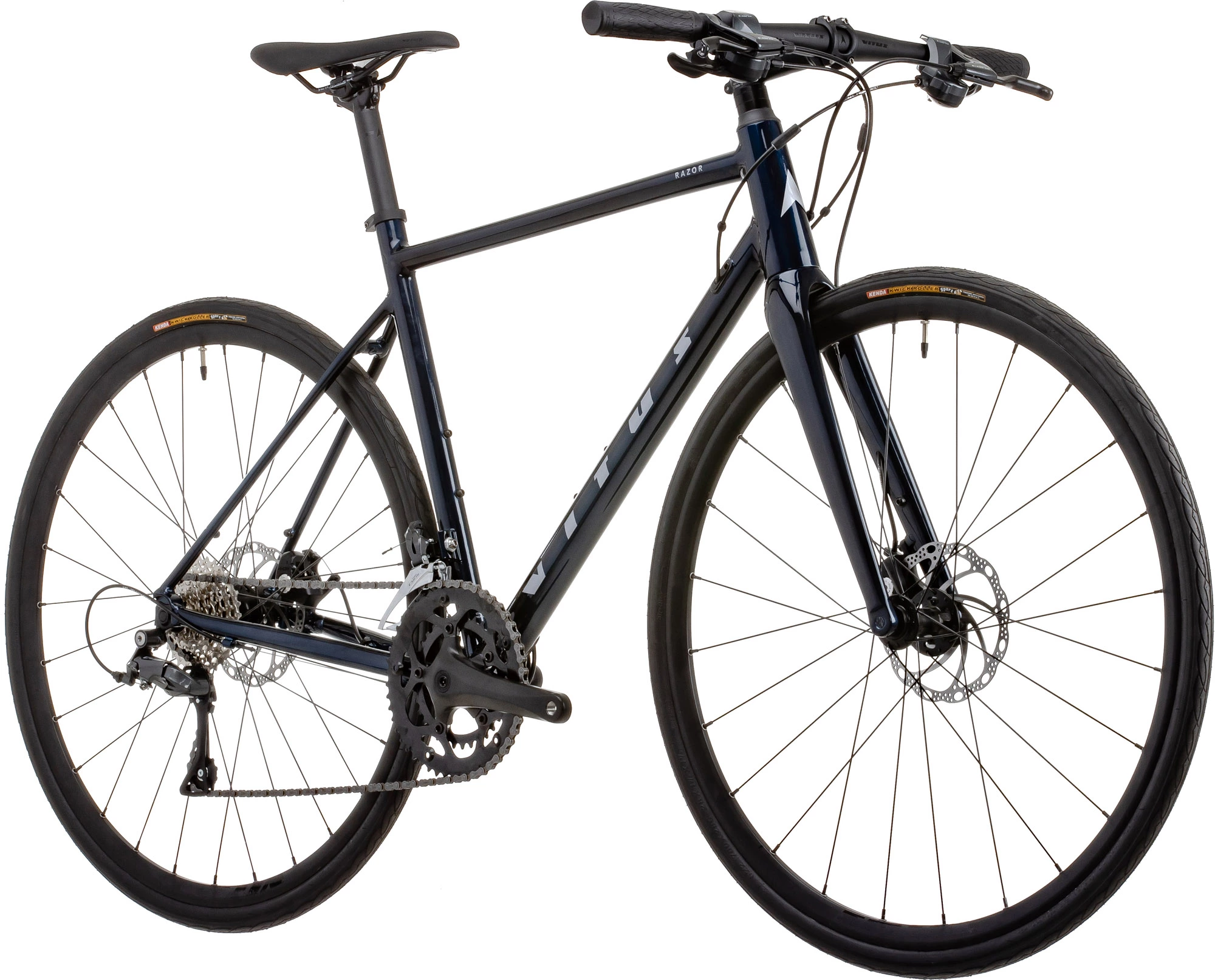 The Razor FB Disc features a flat handlebar, an alloy frame, carbon forks and a Shimano Claris 2×8-Speed groupset with Tektro disc brakes. It also rolls upon Vitus alloy wheels wrapped in high-grip Kenda Kwick Roller Sport tyres.
