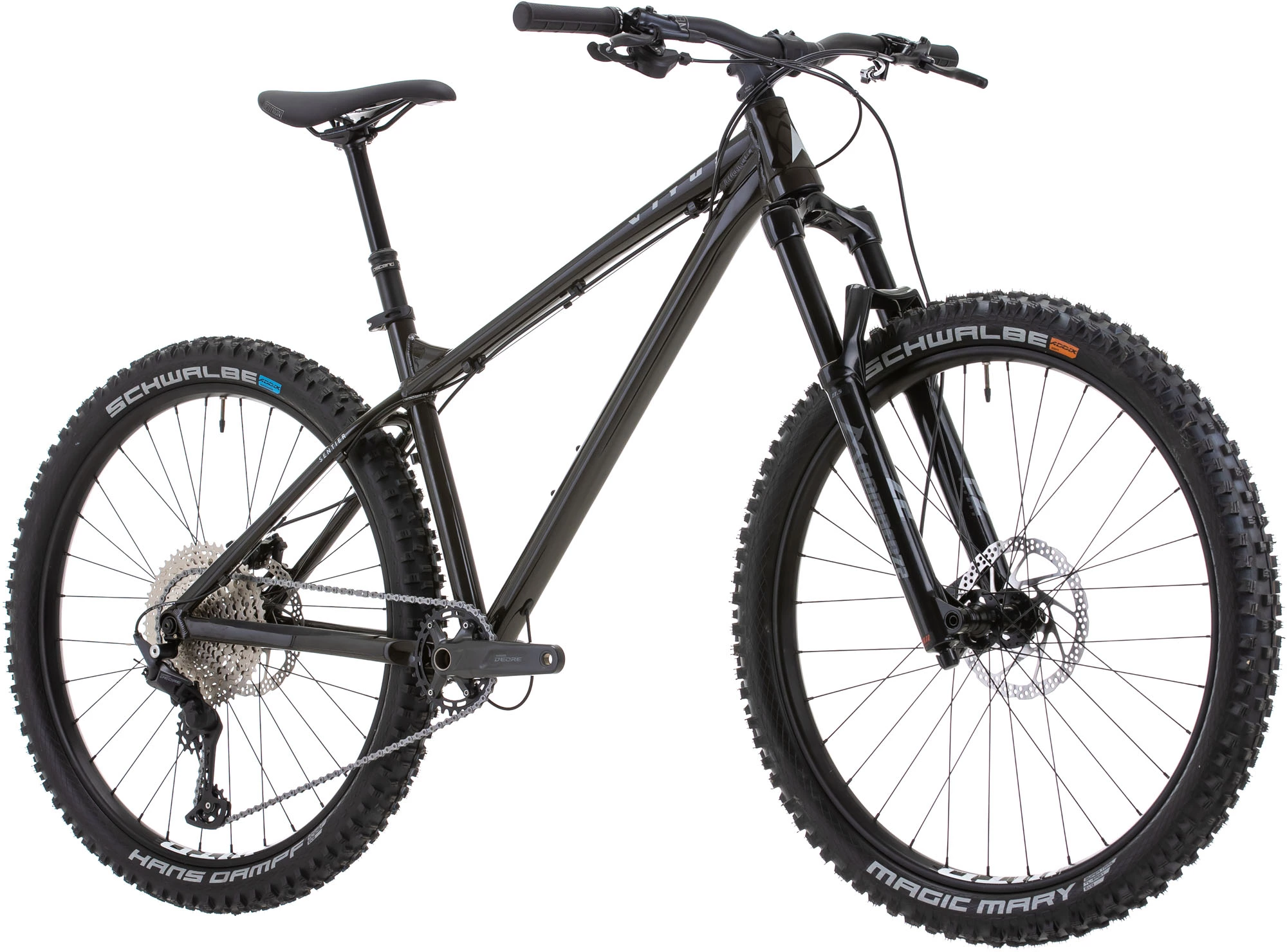 Das Sentier 27 VR verfügt über einen robusten und leichten Aluminiumrahmen mit niedriger, langer und lockerer Geometrie, was Ihnen eine hervorragende Balance aus Agilität, Kontrolle und ganztägigem Fahrkomfort bietet. Dieses MTB wurde entwickelt, um überall in den Bergen eine hervorragende Leistung zu bieten. Es ist mit einer Marzocchi Bomber Z2-Federgabel mit 130 mm Federweg und einem Shimano Deore 1×11-fach-Gruppenset ausgestattet, das eine 11-51-Zähne-Breitbandkassette und hydraulische Scheibenbremsen umfasst. Es rollt außerdem auf Tubeless Ready WTB i30 TCS 2.0-Felgen, die mit schnell rollenden und griffigen Schwalbe Magic Mary- und Hans Dampf-Reifen umwickelt sind.