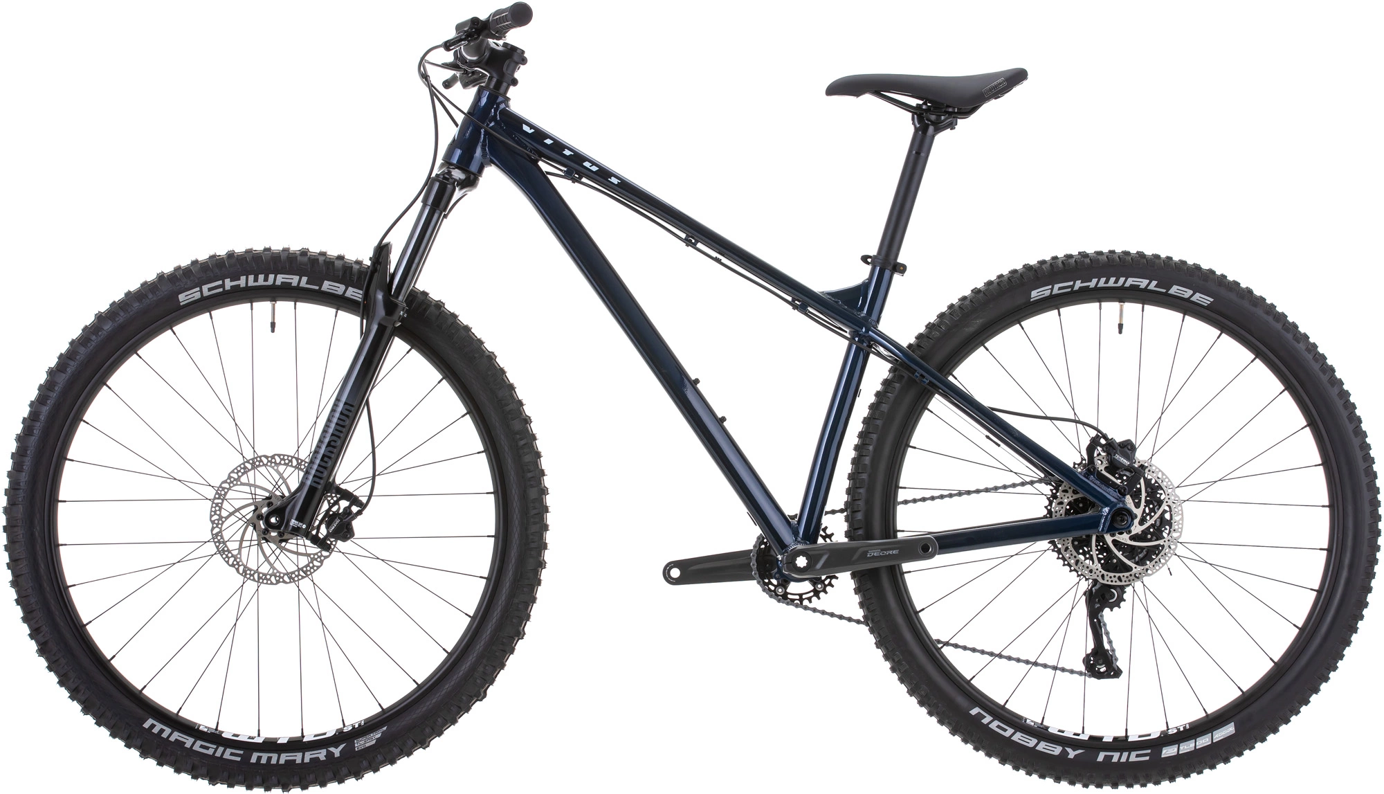 RockShox-Recon-Federgabeln mit 140 mm Federweg sorgen für geländegängige Traktion und Kontrolle, während ein Shimano Deore 1×10-fach-Gruppenset mit einer Kassette mit 11 bis 46 Zähnen und hydraulischen Scheibenbremsen für schnelle Gangwechsel und außergewöhnliche Stoppkraft in jeder Wetterlage sorgt. Es rollt außerdem auf Tubeless Ready WTB i30 TCS 2.0-Felgen, die mit schnell rollenden und griffigen Schwalbe Magic Mary- und Hans Dampf Addix Gummimischung-Tubeless-Reifen umwickelt sind.