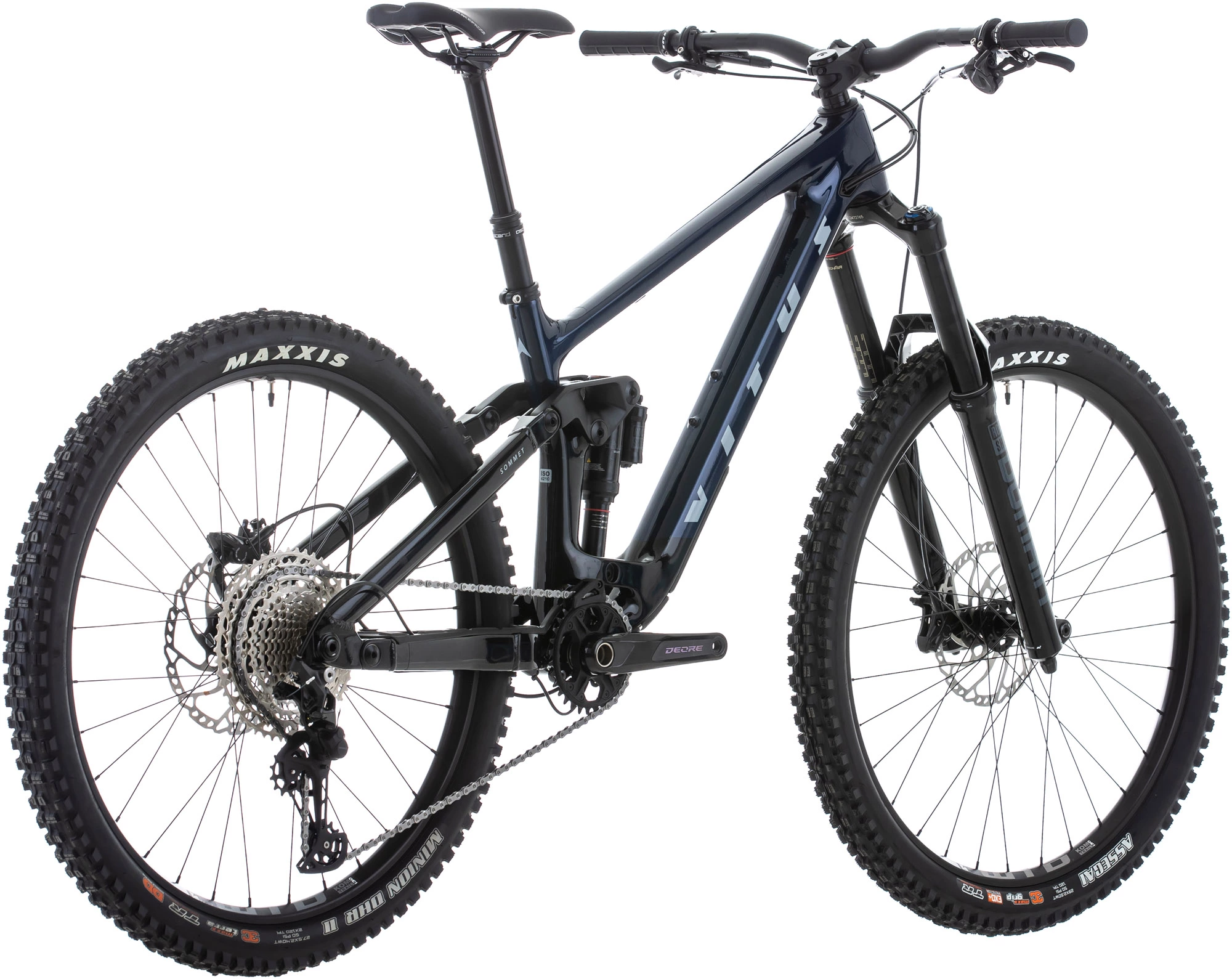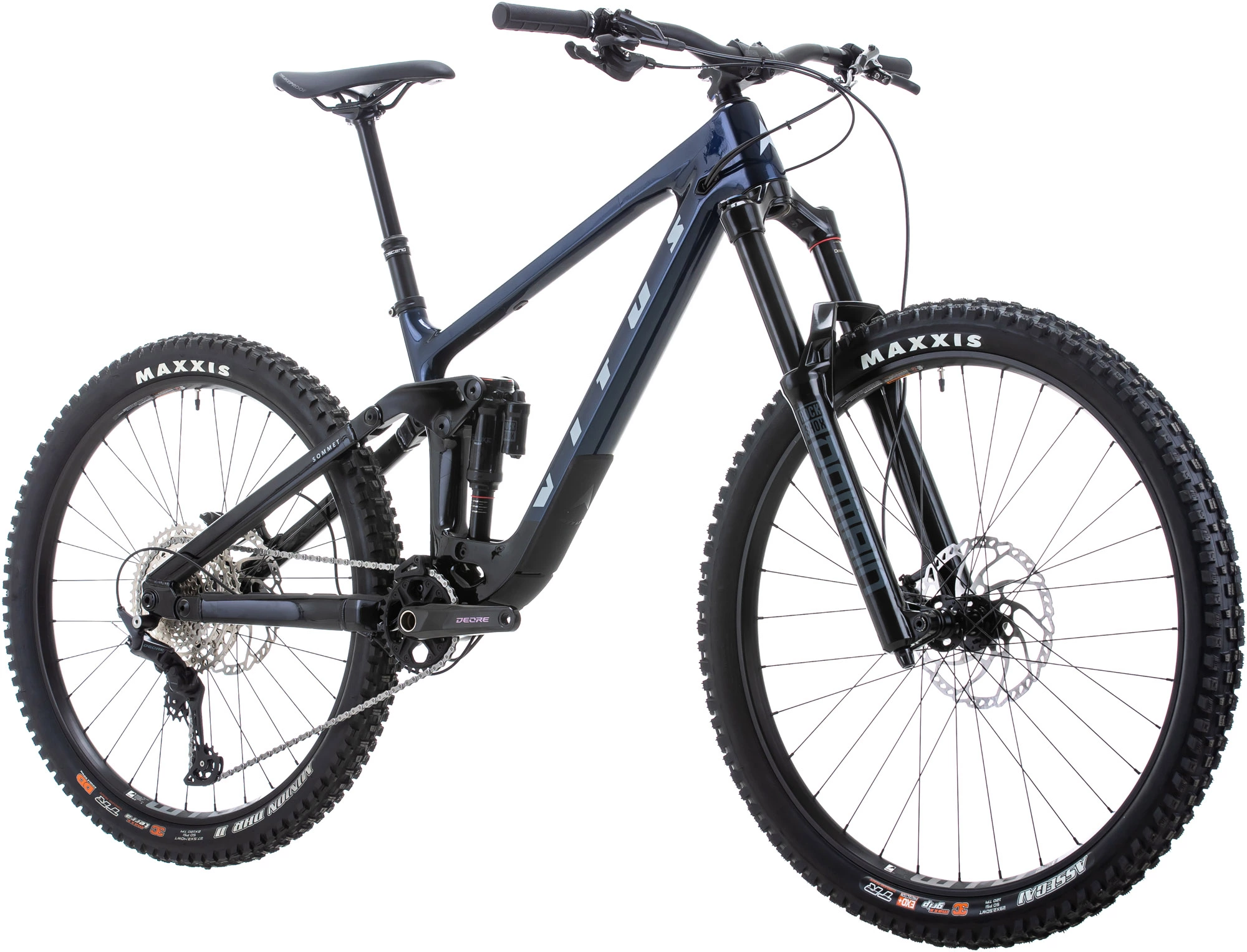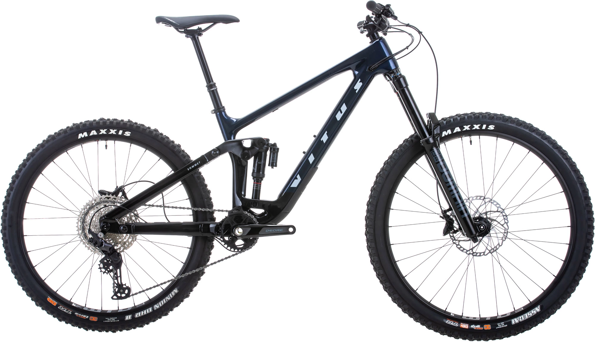 Vitus hat es mit RockShox Domain-Gabeln mit langem Federweg und einem Super Deluxe Select-Dämpfer hinten ausgestattet, um das Gelände zu dkämpfen und gleichzeitig sicherzustellen, dass Sie unter allen Bedingungen eine hervorragende Traktion erleben. Es ist mit einer breitbandigen Shimano Deore 12-fach-Gruppe mit hydraulischen Scheibenbremsen ausgestattet und rollt auf Tubeless Ready WTB KOM Trail i30-Felgen, die mit griffigen Maxxis-Reifen umwickelt sind. Dieses Fahrrad ist außerdem mit einer Brand-X Ascend Dropper-Sattelstütze und einem hochwertigen Komponenten-set von Nukeproof ausgestattet.