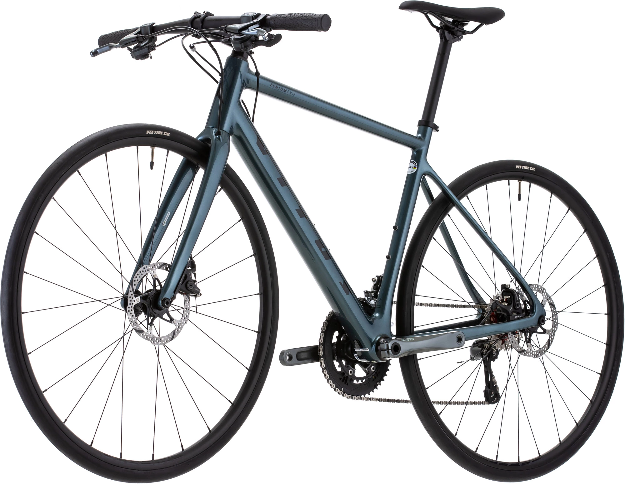 Das Zenium verfügt über ein Carbon-Rahmenset ausgestattet und ist mit einem flachen Lenker und einer Shimano Tiagra 2×10-fach Gruppe mit mechanischen Scheibenbremsen ausgestattet. Der zusätzliche flache Lenker bietet eine entspannte, aufrechte Sitzposition, die ideal für Fitnessradfahren, gemütliche Sport- und Wohltätigkeitsveranstaltungen sowie lange Ausdauereinheiten ist. Es rollt auch schnell und stabil auf Vitus Shining-Felgen, die mit griffigen Kenda Kwick Roller Sport-Reifen umwickelt sind.